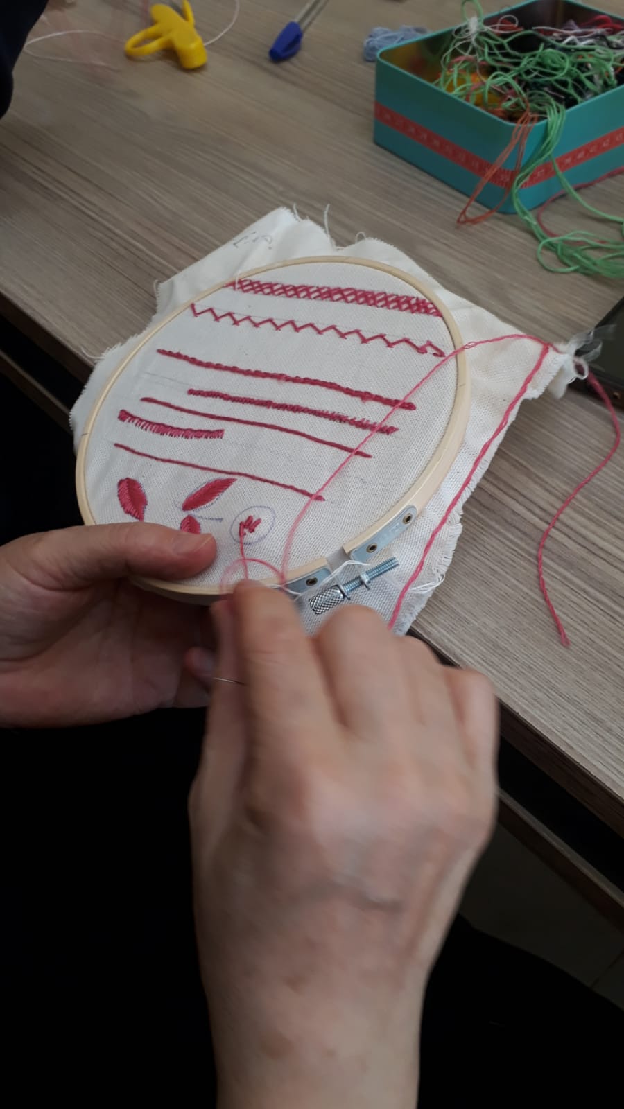 Introduction to Embroidery: Learn the basics of embroidery and its cultural significance. Stitch Techniques: Master fundamental stitches like running stitch, backstitch, and chain stitch. Design and Pattern Making: Create and interpret embroidery patterns. Cultural Styles: Explore and practice embroidery styles from different cultures. Project Work: Apply learned techniques to create original embroidered pieces. Final Exhibition: Showcase completed works in a final exhibition.