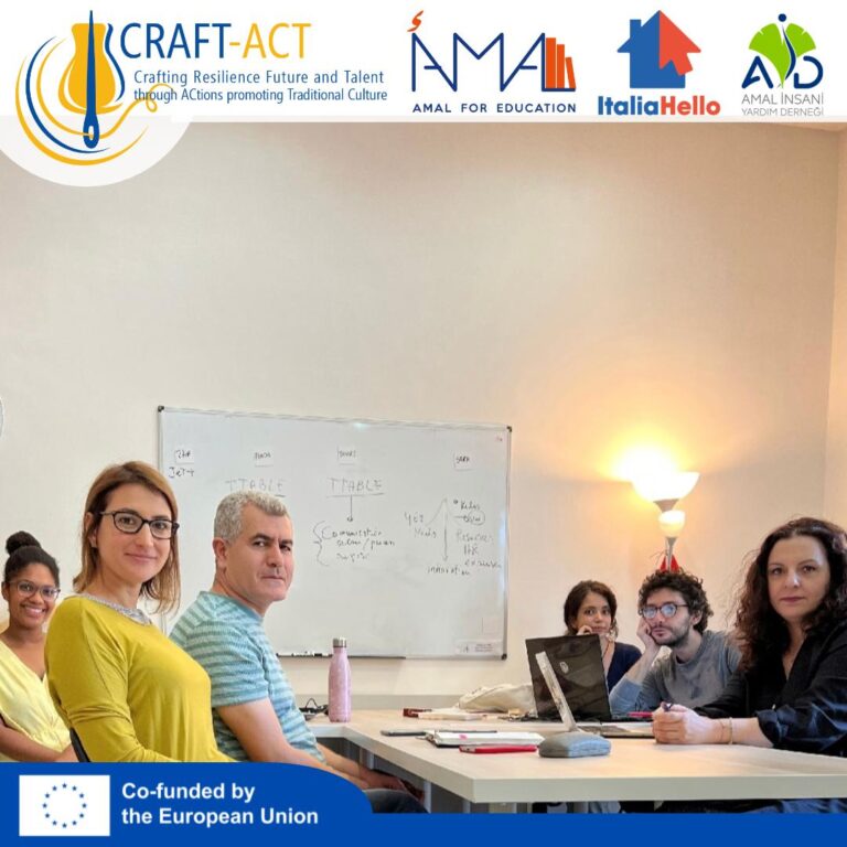The partnership comprises two non-governmental organizations from Italy—AMAL FOR EDUCATION, the Coordinator and ITALIAHELLO —and AMAL İNSANİ YARDIM DERNEĞİ (AİYD) in Turkey, with branches in Gaziantep and Kilis. These organizations have joined forces to empower adult migrants in regions where coexistence and social cohesion are crucial, such as Rome and Kilis, on the Turkish Syrian border. Focused on education and migrant empowerment, particularly for refugees, each organization brings specific expertise and access to target beneficiaries. The collaboration aims to support adult migrants, especially women, through craft workshops and empowerment training, fostering inclusion and peaceful coexistence.