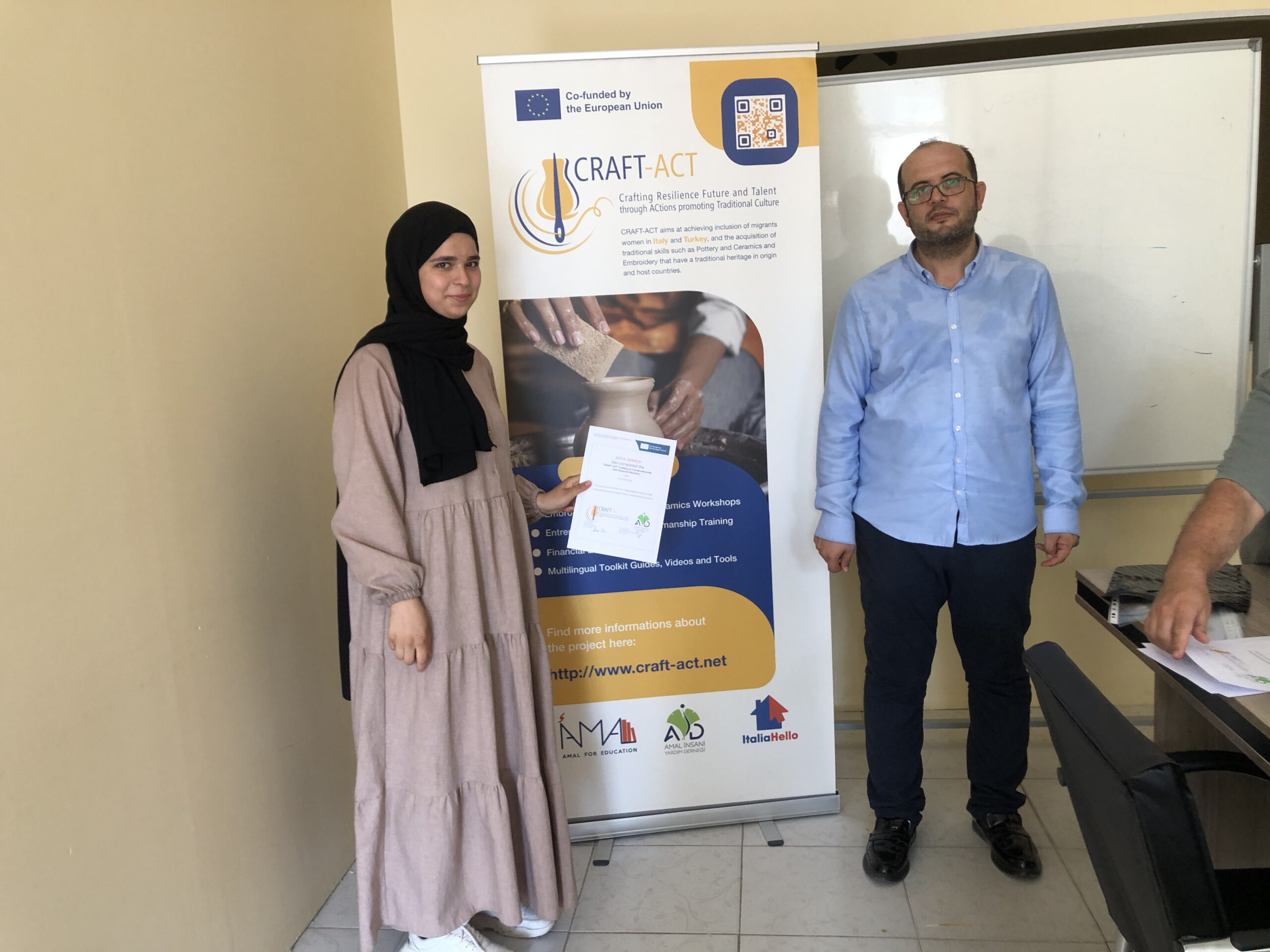 The Craft-Act Project: Crafting Resilience, Future, and Talent through Actions promoting Traditional Culture, is an Erasmus+ KA2 project co-funded by the European Union and coordinated by AMAL for Education APS (Italy), in partnership with AIYD Amal İnsani Yardim Derneği (Turkey) and ItaliaHello (Italy).