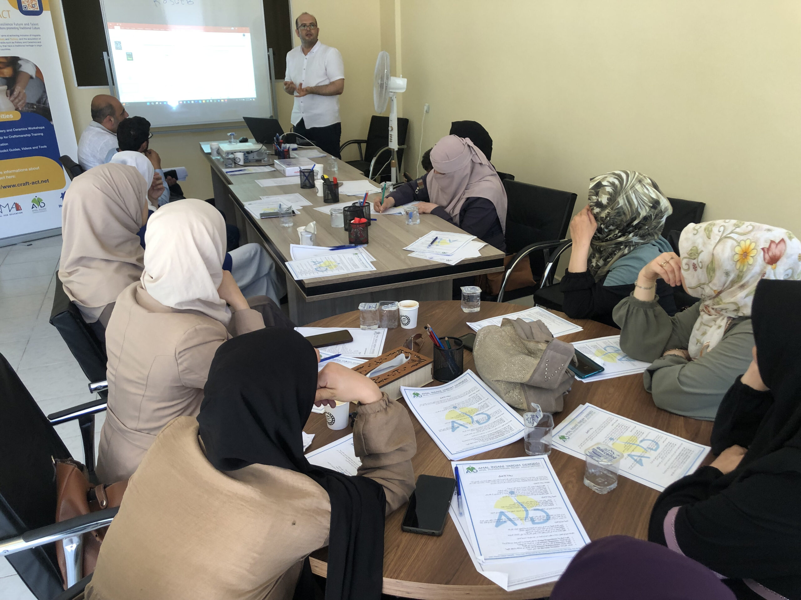 The Entrepreneurship Training aimed to equip beneficiaries from vocational workshops in pottery and embroidery with advanced skills to start their own small handicraft businesses and potentially secure a sustainable income. The overarching goal of the Craft-Act project is to empower migrants and facilitate their economic and social integration in host countries. To this end, the financial education workshop provided participants with essential financial and entrepreneurial knowledge to successfully establish and run small craft businesses. These training sessions also offered valuable opportunities for socializing and networking with professionals in the field.